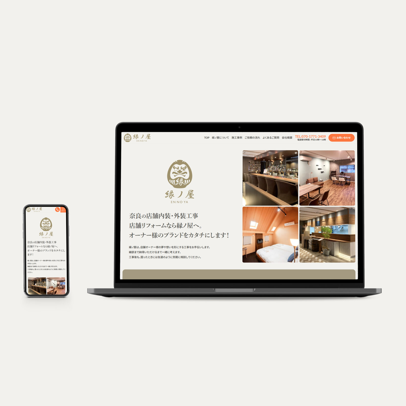 真和建築様の店舗工事専門サービスとして「縁ノ屋」を立ち上げられ、ロゴとホームページ制作をご依頼いただきました。